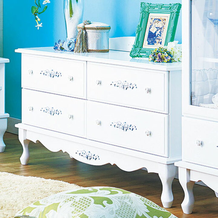 楽天市場 送料無料 完成品 シャビーシック 木製 チェスト ホワイト 3段4引出 幅60cm 奥行35cm 高さ54cm 送料込 シャビー ガーリー チェスト 収納 タンス たんす シック 欧風 ヨーロピアン 姫 姫系 姫家具 家具 白 桐 木 カップボード リビング 組立不要 家具